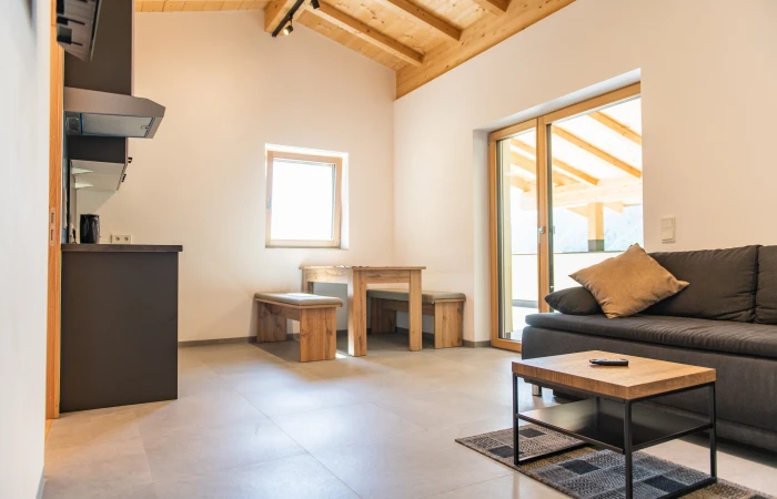 Die Ferienwohnung besteht aus einer modernen, großzügigen Wohnküche mit Schlafcouch und TV sowie WLAN.